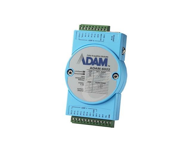 Advantech ADAM-6022 to dwupętlowy kontroler PID z obsługą sieci Ethernet do ogólnych zastosowań sterowania PID.