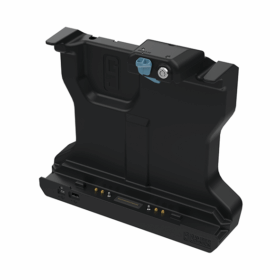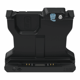 Uchwyt dokujący jest dedykowany tabletowi Getac F120. Zapewnia stabilne i szybkie dokowanie, bezpieczne ładowanie oraz stałe połączenie z aparaturą peryferyjną, zwiększając produktywność i funkcjonalność mobilnego stanowiska pracy. Kompaktowy format oraz konstrukcja kompatybilna z systemami montażowymi Gamber‑Johnson umożliwia wygodną integrację w kokpicie, bez nadmiernego zajmowania przestrzeni oraz z zachowaniem ergonomii pracy.