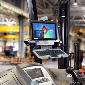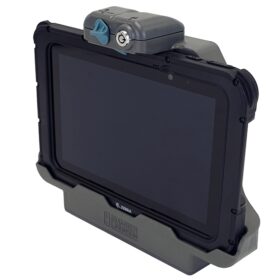 Stacje dokujące i uchwyty Gamber Johnson przeznaczone do wytrzymałych tabletów Zebra ET51/56 umożliwiają łatwe dokowanie i zwalnianie jedną ręką.