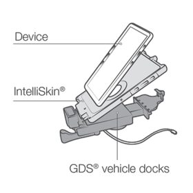 Dolna miska dokująca zawiera 8 pinów pogo i złącze USB Type-C. Bez konieczności zdejmowania pokrowca IntelliSkin z urządzenia, możliwe jest sprawne zamontowanie tabletu w samochodowej stacji dokującej, żeby został naładowany i zablokowany.