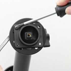 Uchwyt jest wyposażony w obrotową głowicę umożliwiającą łatwą regulację kąta dla lepszego oglądania i przełączanie między trybem pionowym i poziomym. Przechyla się o 17° i obraca o 360°. Płyta montażowa 42x50 mm z otworami AMPS 4 mm.