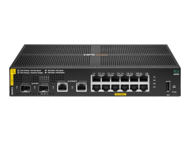 HPE Aruba Networking CX 6000 12G Class4 PoE 2G/2SFP 139W Switch