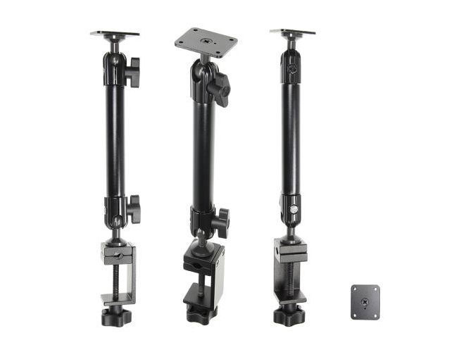 Baza montażowa Brodit na przegubach kulowych z kwadratową podstawą (PN 202015) montowana na obejmie zaciskowej - do stabilnej instalacji urządzenia w dowolnym pojeździe i na dowolnej płaskiej powierzchni lub okrągłej rurze / pręcie. Długość całkowita: 345 mm.
