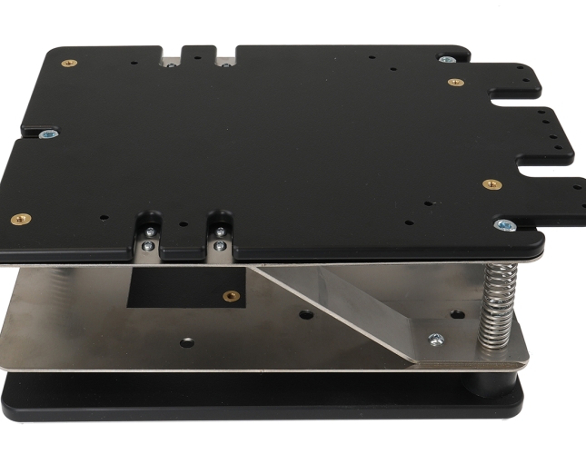 Solidna konstrukcja z zastosowaniem sprężyn i elementów tłumiących drgania minimalizuje wpływ wstrząsów na drukarkę. Dzięki modułowej budowie możliwa jest szybka zmiana modelu drukarki poprzez wymianę jedynie górnej płyty uchwytu. Podstawa posiada gwintowane otwory umożliwiające montaż zgodny ze standardami Vesa 75, Vesa 100 lub AMPS. Uchwyt przeznaczony jest do poziomego montażu wewnątrz pojazdów pracujących w warunkach umiarkowanych wibracji. Wykonany z wysokiej jakości tworzywa ABS i metalu, produkowany w Szwecji.