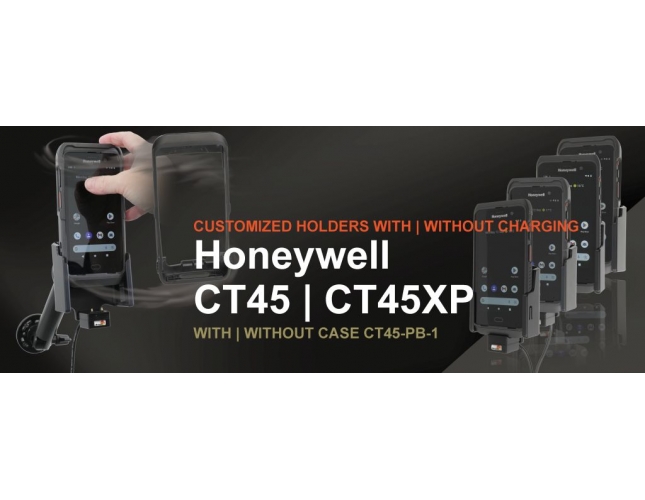 Wytrzymałe uchwyty Brodit dedykowane komputerom mobilnym Honeywell CT45 i CT45 XP w oryginalnym etui (CT45-PB-1) lub bez.