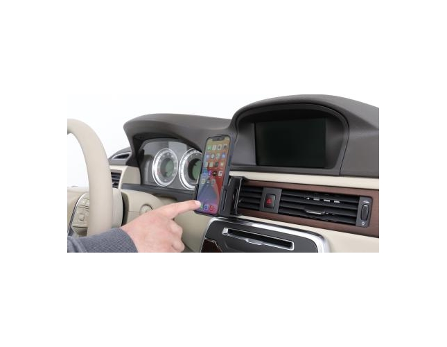 Uchwyt wykonany jest z czarnego tworzywa ABS. Urządzenie łatwo włożyć do uchwytu i równie łatwo zabrać ze sobą wychodząc z pojazdu.