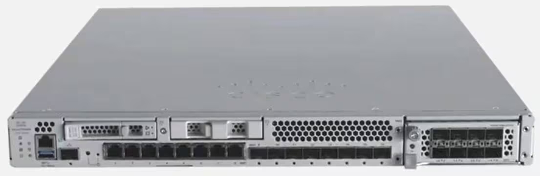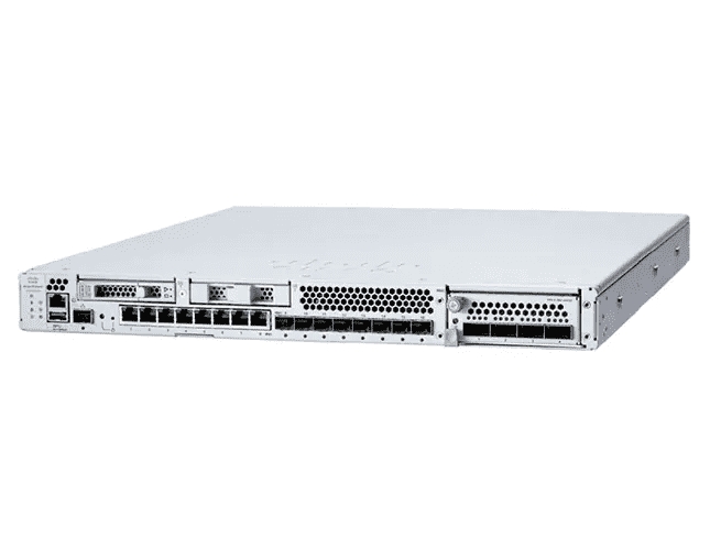 Cisco Secure Firewall 3110: przepustowość zapory ~ 18 Gb/s; tryb FW+AVC+IPS ~ 17 Gb/s; interfejsy: 8 × RJ45 + 8 × 1/10G SFP+. Zastosowanie: dla średnich firm i oddziałów z umiarkowanym ruchem sieciowym