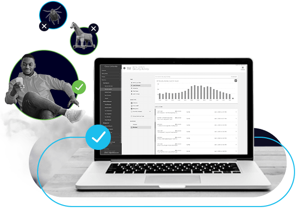 Cisco Umbrella zapewnia widoczność zagrożeń i ochronę przed nimi niezależnie od lokalizacji użytkownika i wykorzystywanych połączeń z internetem. Oferuje elastyczne zabezpieczenia dostarczane w chmurze.