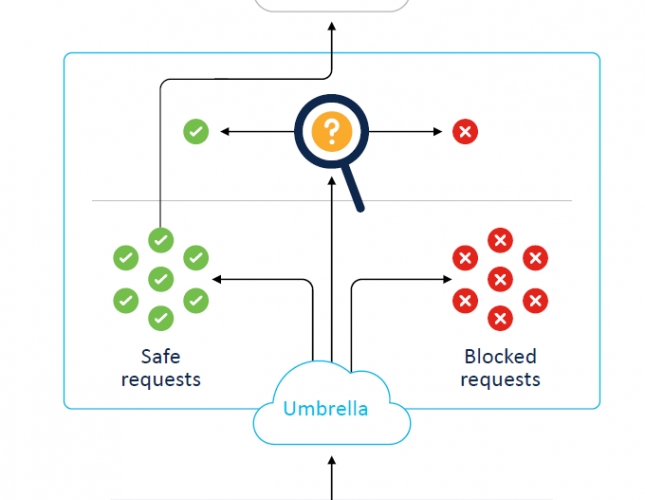 Dzięki analizie ponad setek miliardów zapytań DNS dziennie i światowej sieci centrów danych, Umbrella skutecznie blokuje złośliwe domeny, IP i aplikacje zanim połączenie do nich zostanie nawiązane.