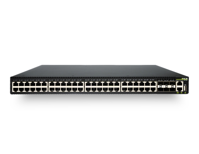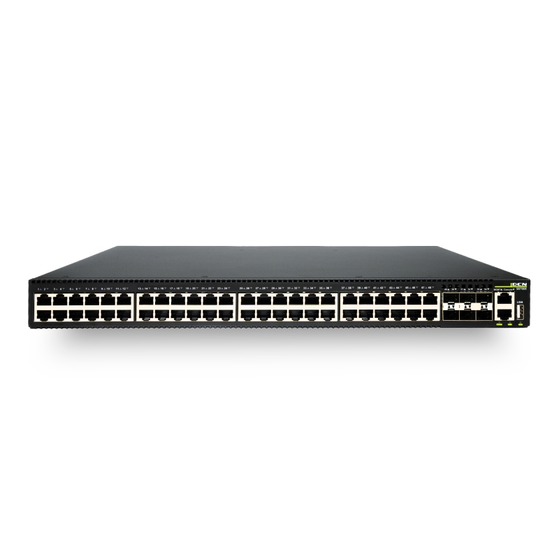 48 portów RJ45 + 6 uplinków 10 GbE, bez PoE. Przeznaczony do środowisk, gdzie kluczowa jest gęstość portów i wydajność, ale urządzenia końcowe mają własne zasilanie. -
