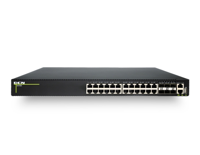 24 porty SFP + 6 uplinków 10 GbE. Model w pełni światłowodowy, dedykowany jako switch agregacyjny w sieciach kampusowych i operatorskich, zapewniający odporność na zakłócenia i duże odległości transmisji. -