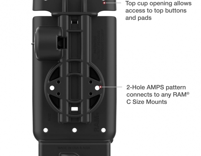 Rozwiązanie można uzupełnić, dodając kompatybilne diamentowe podstawy AMPS z dwoma otworami RAM i mocowanie kulowe w rozmiarze C, co pozwala na szeroką gamę opcji montażu i niemal nieograniczoną regulację.