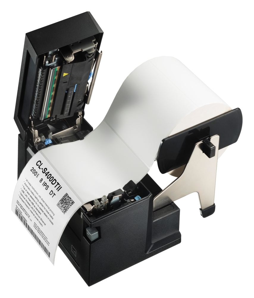Model CL-S400DTII został wyposażony w nowy, wydajniejszy procesor CPU, który skraca czas oczekiwania na wydruk pierwszej etykiety. Dzięki regulowanemu czujnikowi mediów (front media sensor), drukarka bezbłędnie radzi sobie z nietypowymi materiałami: biletami z czarnym znacznikiem, kartami z nacięciem czy etykietami o nieregularnych kształtach. Konstrukcja pozwala na podawanie mediów zarówno z wewnętrznej rolki, jak i zewnętrznych stosów typu fanfold.