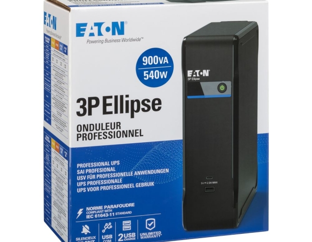 PN: 3P900UI | Model: Eaton 3P Ellipse 900 USB | Format: Tower (wolnostojący) | Moc: 900 VA / 540 W