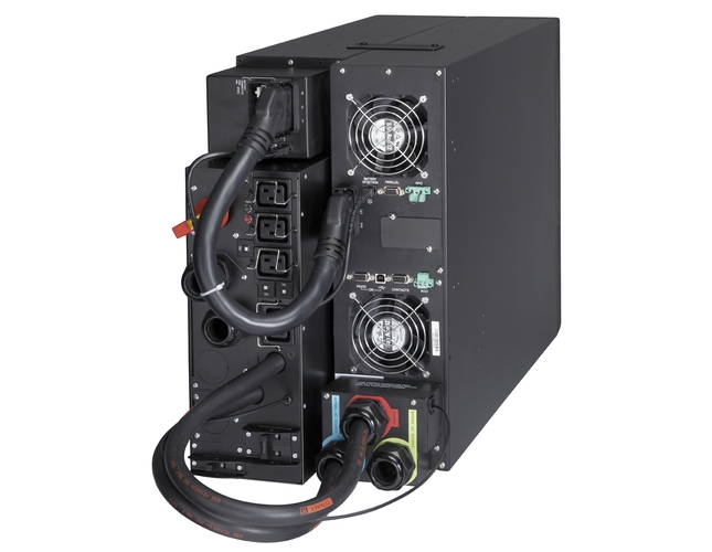 Wysoka efektywność energetyczna: Do 95% w trybie online double-conversion oraz do 98% w trybie wysokiej efektywności, co przekłada się na niższe koszty eksploatacji i chłodzenia.