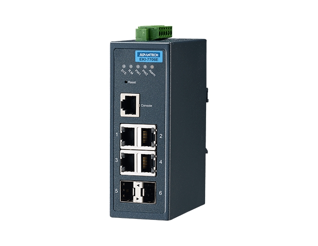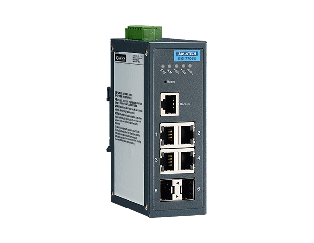 Advantech EKI-7706E-2F to zarządzalny przemysłowy switch Ethernet 4FE + 2G SFP.