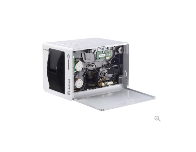 To bardzo kompaktowa (ledwie większa od standardowej kartki papieru w formacie listowym) i cicha (48 decybeli podczas pracy), Elypso jest dyskretna i zajmuje niewielką powierzchnię. Kable i złącza są umieszczone z tyłu, aby zmniejszyć plątaninę kabli. Dzięki unikalnej konstrukcji Elypso ładowanej od przodu, wkładanie i pobieranie kart ułatwia dostęp nawet w ciasnych miejscach.