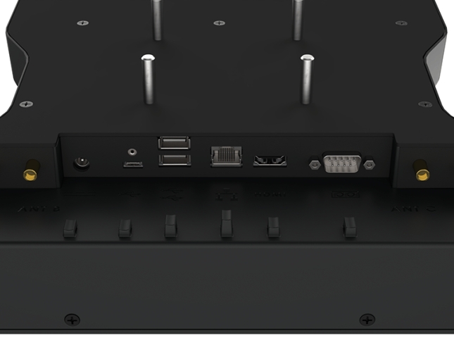 Umożliwia stabilne zamocowanie tabletu, jego ładowanie oraz dostęp do szerokiego wachlarza interfejsów - takich jak HDMI, Ethernet, USB-A/C i port szeregowy. Opcjonalny quad-RF SMA pozwala na podłączenie anten komunikacyjnych, dzięki czemu rozwiązanie sprawdza się w wymagających środowiskach sieciowych. Kompaktowe wymiary i solidna konstrukcja zapewniają odporność na wstrząsy i wibracje typowe dla pojazdów terenowych. Łatwość dokowania jedną ręką usprawnia codzienną obsługę, zwłaszcza w dynamicznych warunkach operacyjnych.