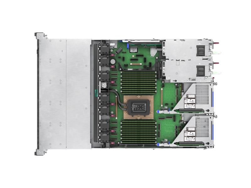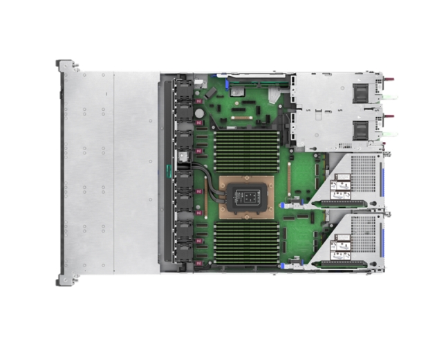 - Możliwość zastosowania do 10 dysków SFF lub 20 dysków EDSFF E3.S, a także urządzenia rozruchowego systemu operacyjnego i kart sieciowych OCP w przedniej klatce.
