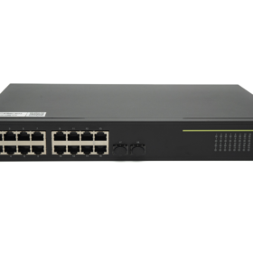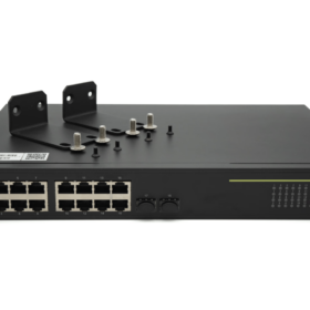 16 portów RJ‑45 1G z PoE+ + 2 porty SFP; budżet PoE ok. 250 W; switching capacity ok. 36 Gb/s; forwarding rate ok. 26,8 Mpps.
