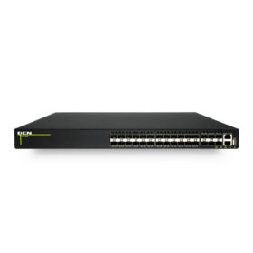 24 porty SFP + 6 uplinków 10 GbE. Model w pełni światłowodowy, dedykowany jako switch agregacyjny w sieciach kampusowych i operatorskich, zapewniający odporność na zakłócenia i duże odległości transmisji.