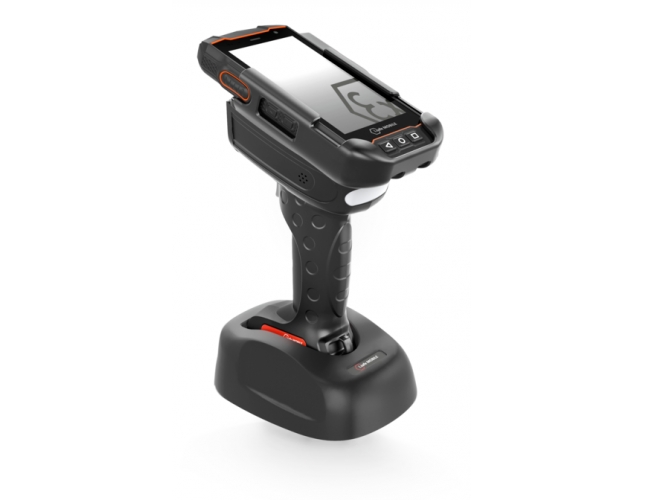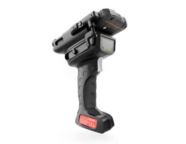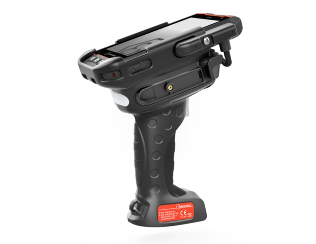 To multifunkcyjne urządzenie składa się z ręcznego czytnika kodów kreskowych i przemysłowego smartfona IS530.x (IS530.1), co stanowi elastyczne połączenie umożliwiające niezawodne zbieranie danych w obszarach przemysłowych.