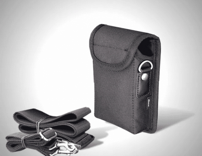 Kabura z klapą zamykaną na rzep. W zestawie znajdują się pas biodrowy i pasek na ramię.