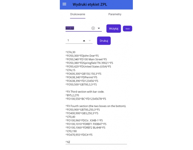 • Wydruki ZPL – zlecanie wydruku etykiet do drukarek sieciowych czy bluetooth;
