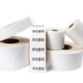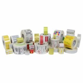 Etykiety termiczne to zwykle samoprzylepne etykiety papierowe na rolce pokryte specjalną termoczułą powłoką chemiczną. Nagrzane elementy głowicy termicznej drukarki wypalają znaki bezpośrednio na etykiecie – nie ma więc konieczności zastosowania taśmy termotransferowej.