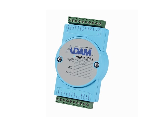 Advantech ADAM-4024 udostępnia 4 uniwersalne kanały wyjściowe. Co więcej, został zaprojektowany z 4 wejściami cyfrowymi do integracji aplikacji, takich jak wyjścia awaryjnego zatrzasku lub domyślne wyzwalacze użytkownika. Wykorzystuje izolatory optyczne, aby zapobiec efektom pętli uziemienia i ograniczyć uszkodzenia spowodowane przepięciami.