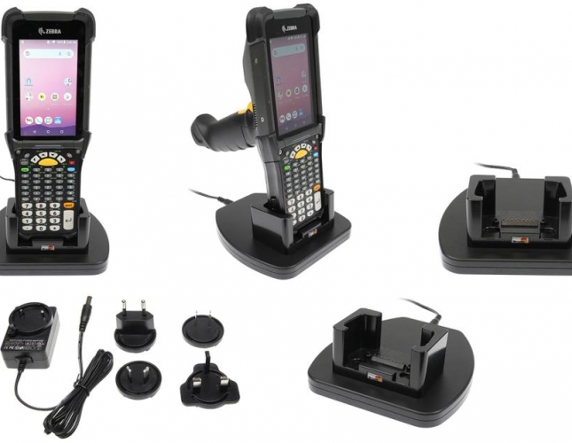 Komputer mobilny jest ładowany za pomocą pinów pogo - wystarczy włożyć MC9300 do stacji ładującej, a proces ładowania rozpocznie się automatycznie. Można ładować z uchwytem gunowym.