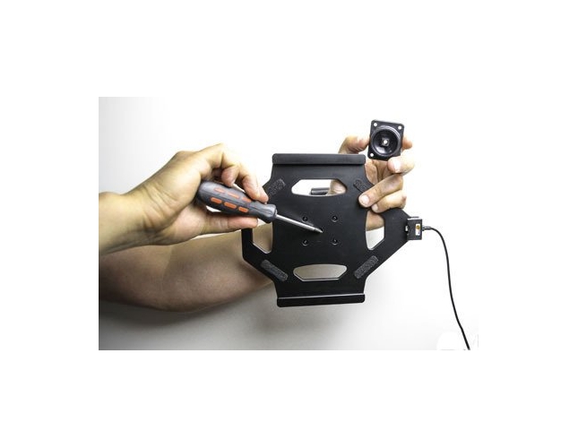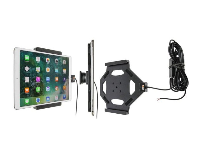Uchwyt aktywny Brodit (PN: 527977) do montażu stałego do Apple iPad Pro 10.5 (A1701, A1709). Wyposażony został w obrotową regulację nachylenia oraz kabel do ładowania zatwierdzony przez Apple.