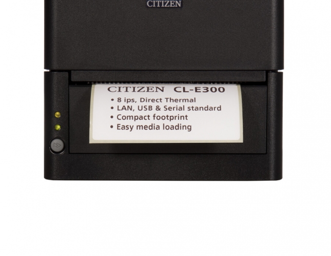 CL-E300 to kompaktowa i w pełni funkcjonalna drukarka biurkowa firmy Citizen o rodzielczości 203 DPI. Jest prosta w obsłudze i intuicyjna, dzięki czemu użytkownik nie traci czasu na zmianę etykiet lub dostosowanie ustawień. Zgodność z normą ENERGY STAR®.