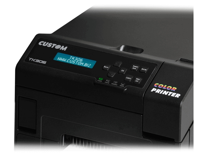 TK306 to 3-calowa kolorowa drukarka etykiet i biletów firmy Custom. Jednocześnie to najmniejsza kolorowa drukarka LED DRY TONER z fotograficzną jakością druku (1200 dpi).