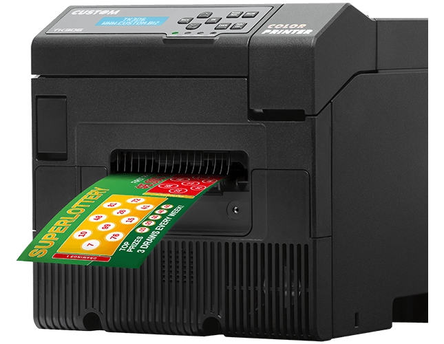 Drukarka Custom TK306 drukuje na zwykłym papierze do drukarek, a nawet na papierze z recyklingu, łącząc wysokiej jakości wydruki kolorowe z poszanowaniem środowiska.