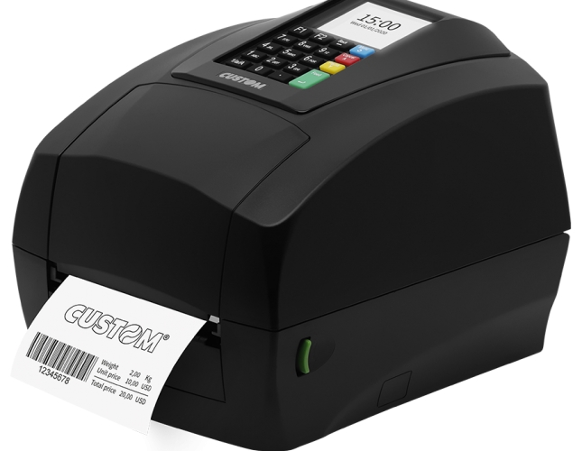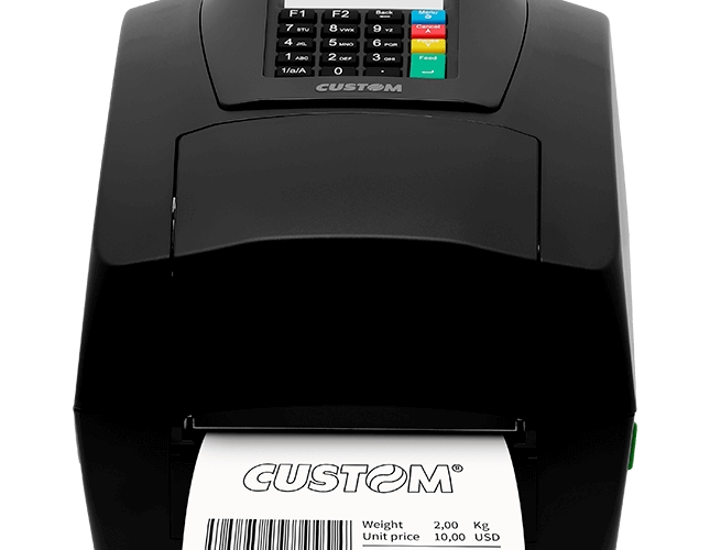 Custom D4 302-K to kompaktowa, biurkowa drukarka etykiet o rozmiarze 4 " z przemysłowym wyposażeniem i wysoką wydajnością.