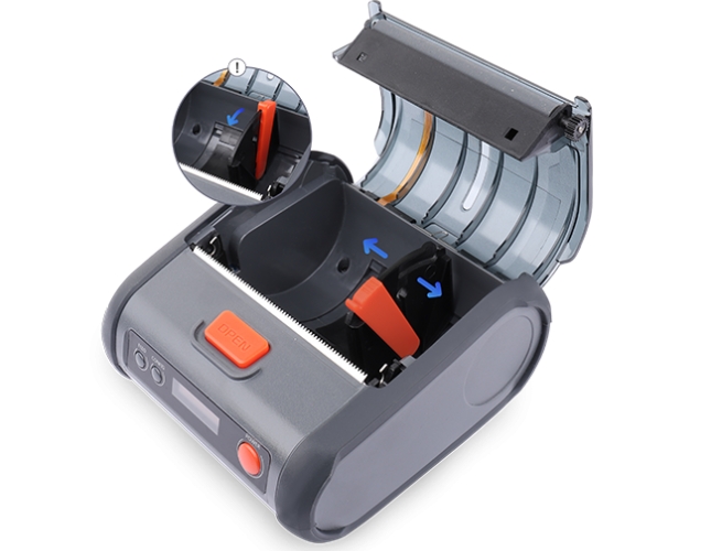 Regulowany suwak umożliwia dopasowanie rolek nośników o różnej szerokości do drukarki, aby zmieniać szerokość wydrukowanych paragonów.