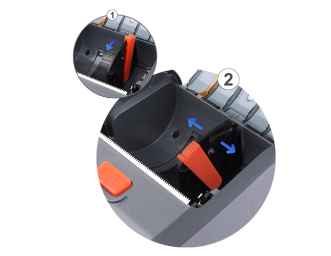 Regulowany suwak umożliwia dopasowanie rolek nośników o różnej szerokości do drukarki, aby zmieniać szerokość wydrukowanych paragonów.