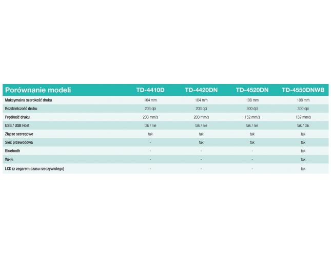TD-4550DNWB (300 DPI, + sieć przewodowa, Wi-Fi i złącze szeregowe oraz wyświetlacz LCD z zegarem czasu rzeczywistego)
