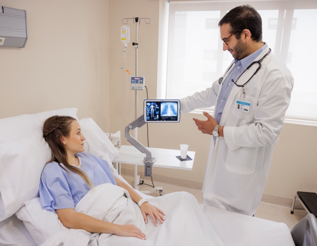 Duży wyświetlacz o wysokiej rozdzielczości i przekątnej 10,1-cala ułatwia czytanie i wprowadzanie tekstu, dzięki czemu pielęgniarki mogą z łatwością odczytywać i dodawać notatki do elektronicznej dokumentacji medycznej pacjenta oraz oglądać najdrobniejsze szczegóły zdjęcia w celu oceny stanu rany pacjenta podczas telewizyty.