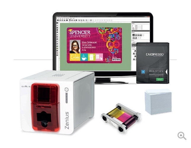 Evolis Zenius to kompaktowa i zwinna drukarka kart przeznaczona do jednostronnego drukowania i kodowania bardzo dużej ilości różnorodnych kart plastikowych. Drukarka Zenius generuje karty kolorowe lub monochromatyczne, indywidualnie lub w małych seriach, z najwyższą jakością.
