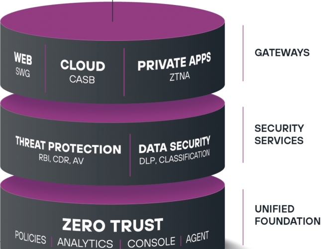 - Secure Web Gateway (SWG) - Monitoruje i kontroluje wszelkie interakcje z dowolną stroną internetową, w tym blokuje dostęp do stron internetowych na podstawie kategorii i wyniku ryzyka, blokuje pobieranie złośliwego oprogramowania, blokuje przesyłanie wrażliwych danych na osobiste konta udostępniania plików oraz wykrywa i kontroluje shadow IT. Obecnie dostępne jako oprogramowanie agentowe dla systemów Windows i MacOS.
