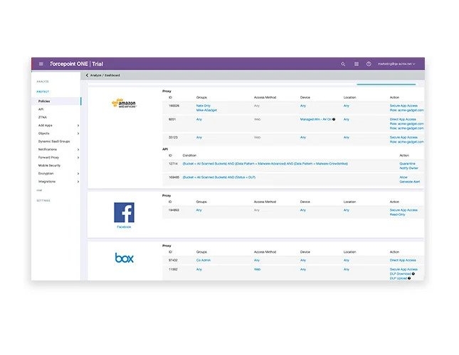 Kompleksowe rozwiązanie Forcepoint ONE łączy w sobie technologie bezpieczeństwa Zero Trust i SASE, w tym trzy bezpieczne bramy dostępu oraz szereg wspólnych usług ochrony przed zagrożeniami i bezpieczeństwa danych, a wszystko to zbudowane na platformie cloud-native. Takie podejście umożliwia organizacjom zarządzanie jednym zestawem polityk, w jednej konsoli, komunikującej się z jednym agentem punktów końcowych.