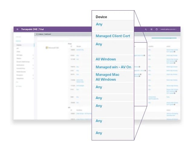 Forcepoint ONE to usługa w chmurze typu "wszystko w jednym", która ułatwia bezpieczeństwo rozproszonym firmom i agencjom rządowym, które muszą szybko dostosować się do zmieniających się zdalnych i hybrydowych zespołów roboczych. Zapewnia pracownikom, kontrahentom i innym użytkownikom bezpieczny, kontrolowany dostęp do informacji biznesowych w sieci, w chmurze (Saas i IaaS) oraz w prywatnych aplikacjach, chroniąc jednocześnie przed atakami i wrażliwe dane. W rezultacie, Forcepoint ONE sprawia, że użytkownicy są bardziej produktywni, zarówno zdalnie, jak i w biurze, a przedsiębiorstwa bardziej wydajne.
