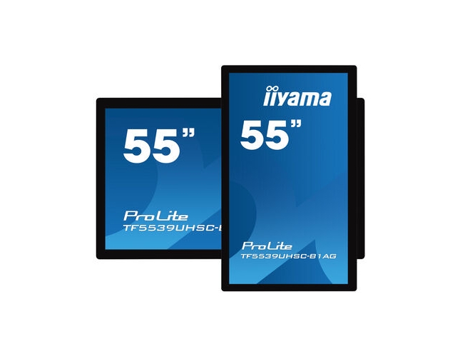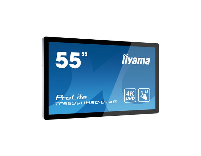 iiyama PROLITE TF5539UHSC-B1AG to 55-calowy interaktywny, wielkoformatowy wyświetlacz Open Frame PCAP z 15 punktami dotykowymi, panelem IPS i funkcją dotykową przez szkło do użytku w orientacji poziomej, pionowej lub stolikowej.