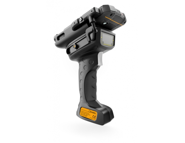To multifunkcyjne urządzenie składa się z ręcznego czytnika kodów kreskowych i przemysłowego smartfona IS530.x (IS530.2), co stanowi elastyczne połączenie umożliwiające niezawodne zbieranie danych w obszarach przemysłowych.