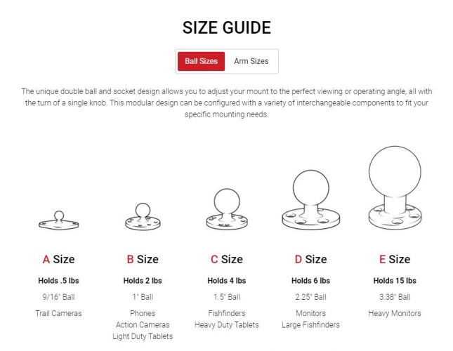 Głowica obrotowa w rozmiarze D 2.25 cala umożliwia podłączenie do dowolnego ramienia z podwójnym gniazdem RAM w rozmiarze D.