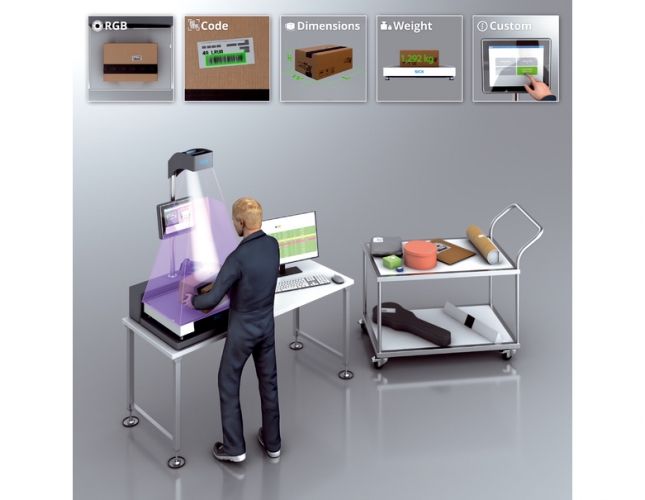 Zintegrowana technologia zdjęć 3D umożliwia bardzo szybkie rejestrowanie wymiarów obiektów przy równocześnie wysokiej precyzji rozdzielczości. W ten sposób dane podstawowe są gromadzone precyzyjnie w ciągu kilku sekund dzięki czujnikowi wizyjnemu 3D Visionary-S i przekazywane do hosta. System wykrywa automatycznie nowe obiekty i rozpoczyna pomiar – bez aktywnej ingerencji personelu obsługi.