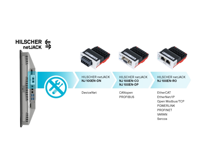 Dzięki opcjonalnie dostępnym modułom Hilscher netJACK, w OPC9000 można zintegrować różne typy magistrali polowych, a także Ethernet w czasie rzeczywistym jako master lub slave. Integrację można przeprowadzić szybko i łatwo bez użycia narzędzi. Daje to ogromną elastyczność.