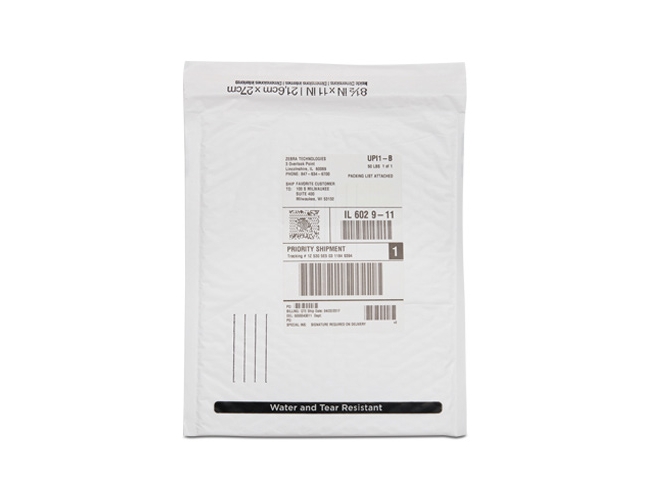 Zebra PolyE 4000D to etykieta do druku termicznego, polietylenowa, nadająca się do recyklingu etykieta z trwałym klejem akrylowym. Umożliwia recykling typowych wypełnionych powietrzem kopert z polietylenu, bez konieczności usuwania etykiet.